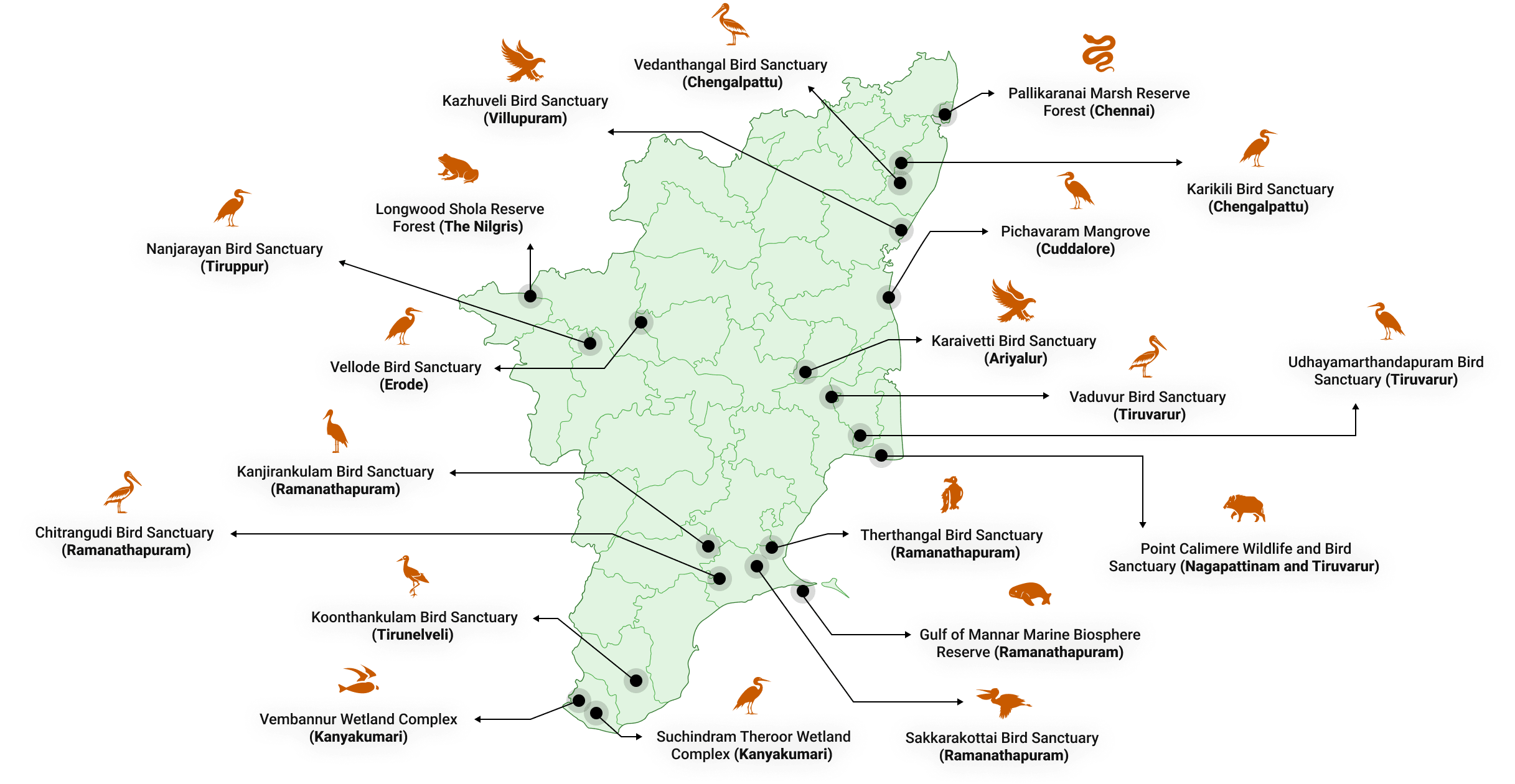 High Altitude and Hilly Zone, High Rainfall Zone, Southern Zone, Cauvery Delta Zone, Western Zone, North Western Zone, North Eastern Zone